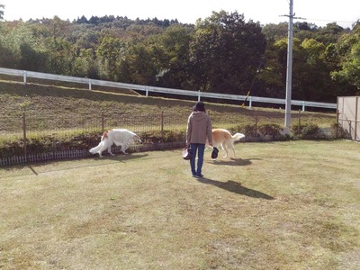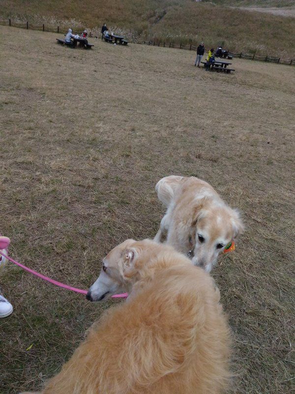 ワンコ連れも多く、ゴールデンと交流中の陸ぼん