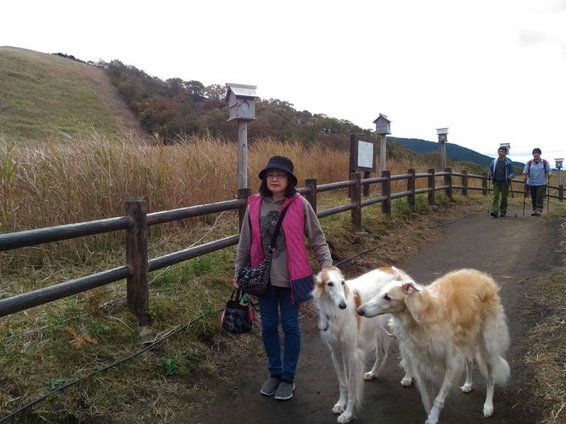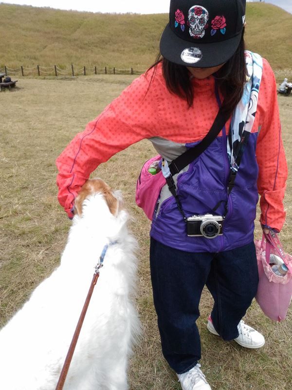 防寒体制を整えたユリ母は、ダウンベスト装着の高原仕様である
