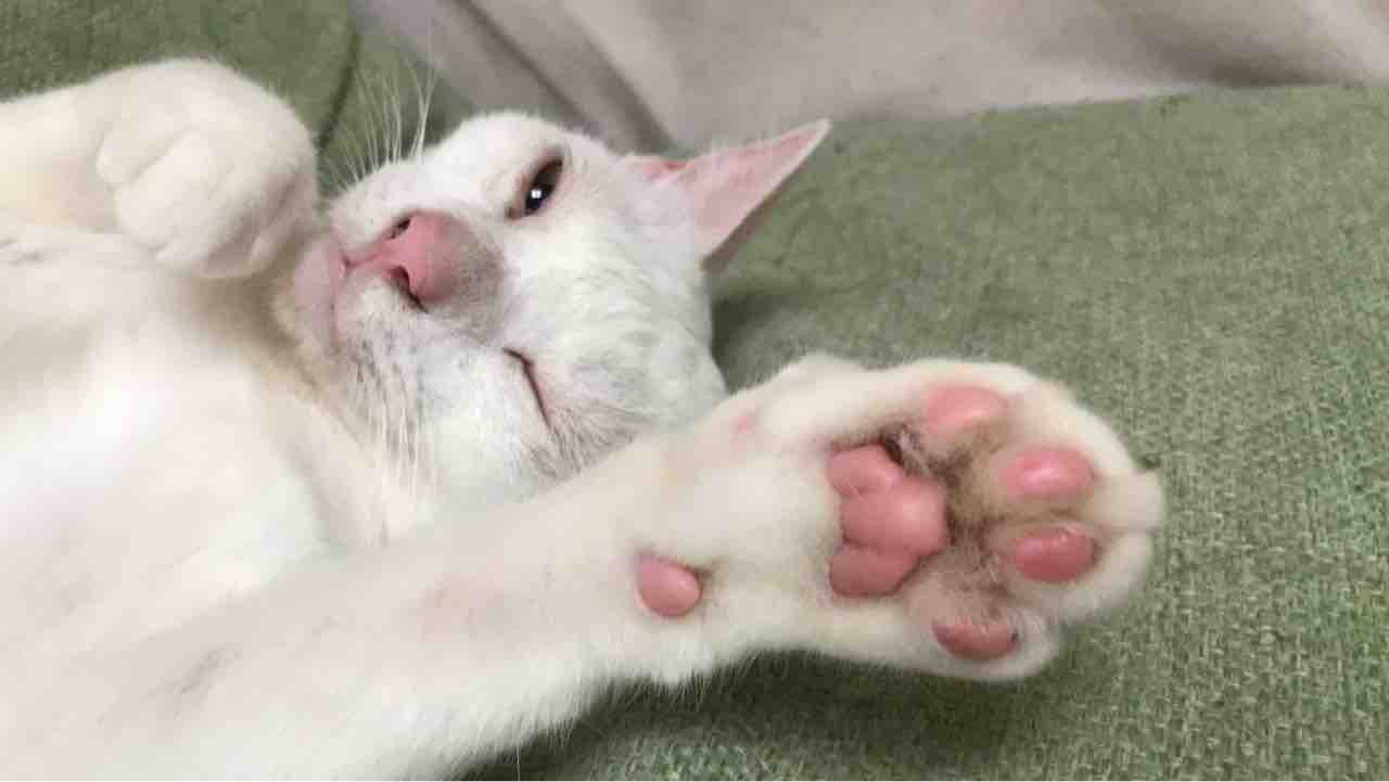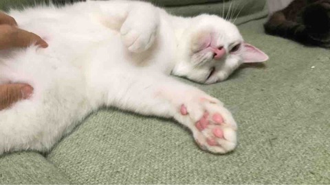 麿白先生が他の猫と違う所は、前脚を触られたりこうして見せるようにしても全然嫌がらないどころかどうやらそれが好きであるらしいこと。