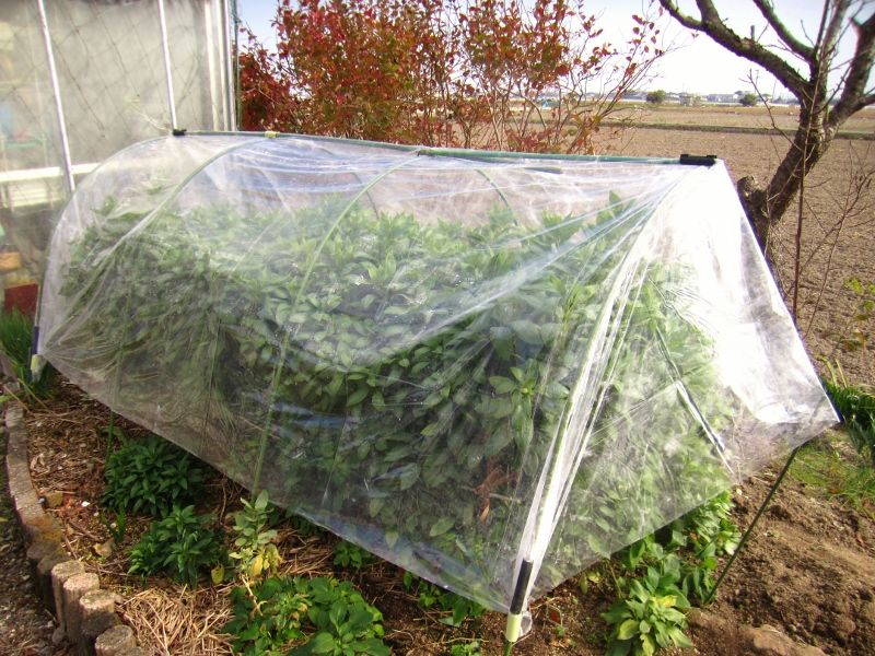 今年は霜が降りる前にビニールを張ると言ってたのになかなかしないので、私がしてあげました。