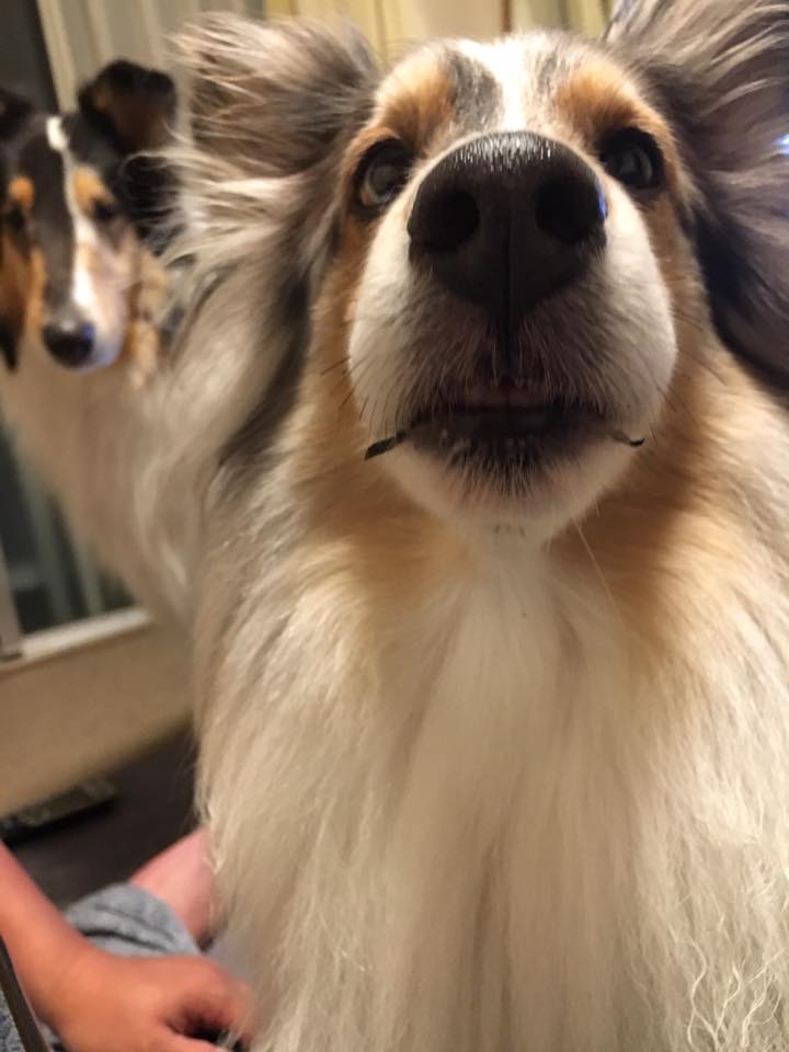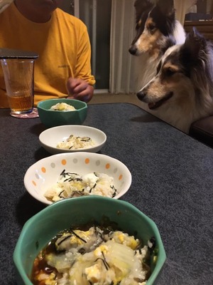 お鍋しましたー! みんなー! お雑炊一緒に食べるでー!! 4人前。 ちょ!あんたこっち来てみい! ゆらちゃん悪いことしてないよドキドキ・・ きざみ海苔つけてる。 まあまあこんな犬見たことない。
