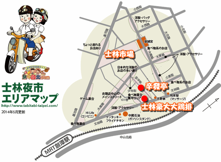 これが,台北最大の夜市 士林夜市の地図です。詳しくはココ。