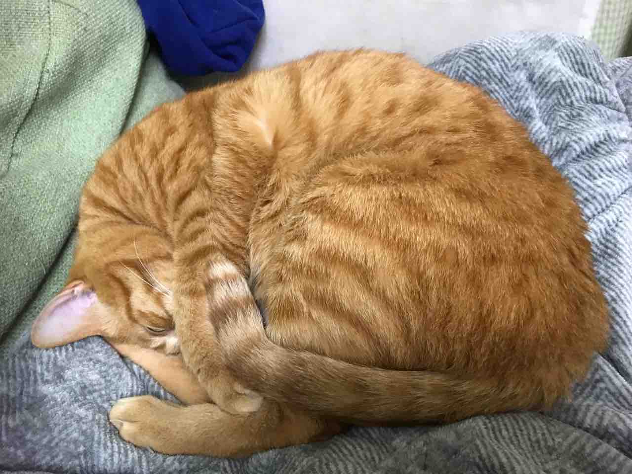ゴキゲンになるとこのように丸まってきなこもちになります。