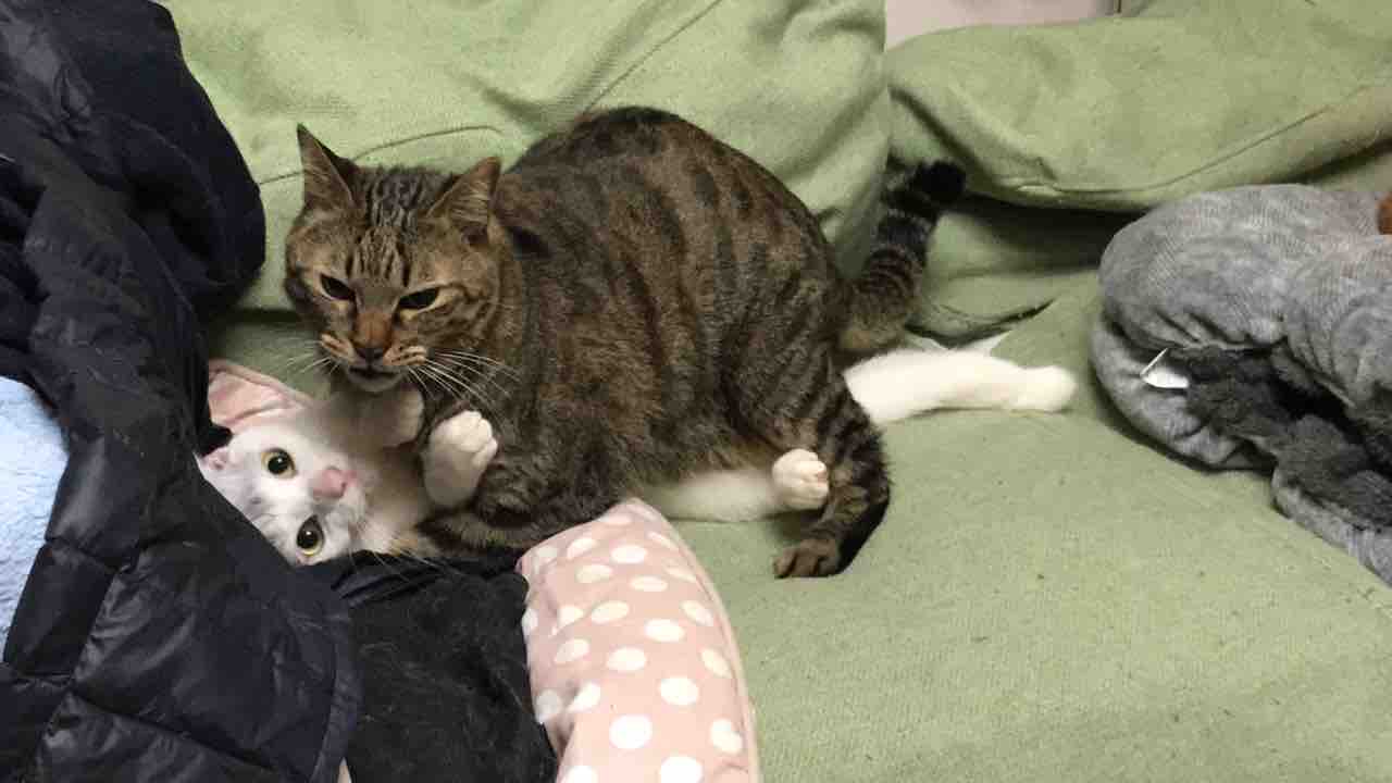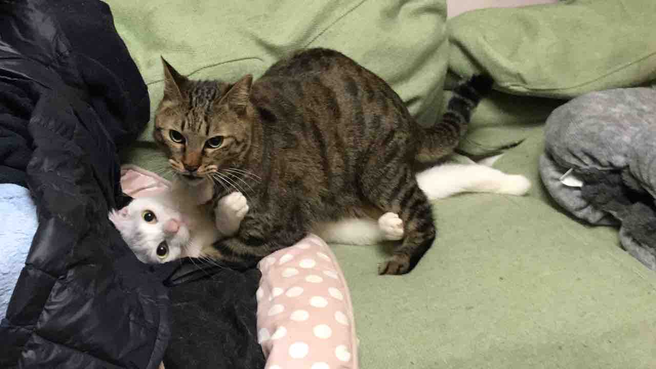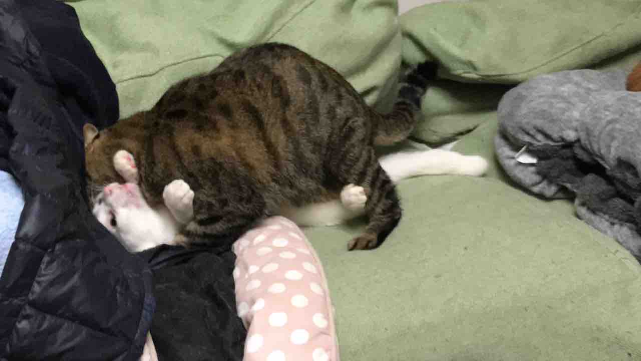 猫レスリングの過程でこうなったんでしょうけど、麿白先生の黒目顔、そして時雉が微妙にフレーメンしていてこの顔。なぜか気まずい空気が流れました。