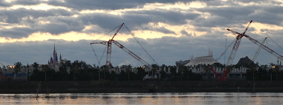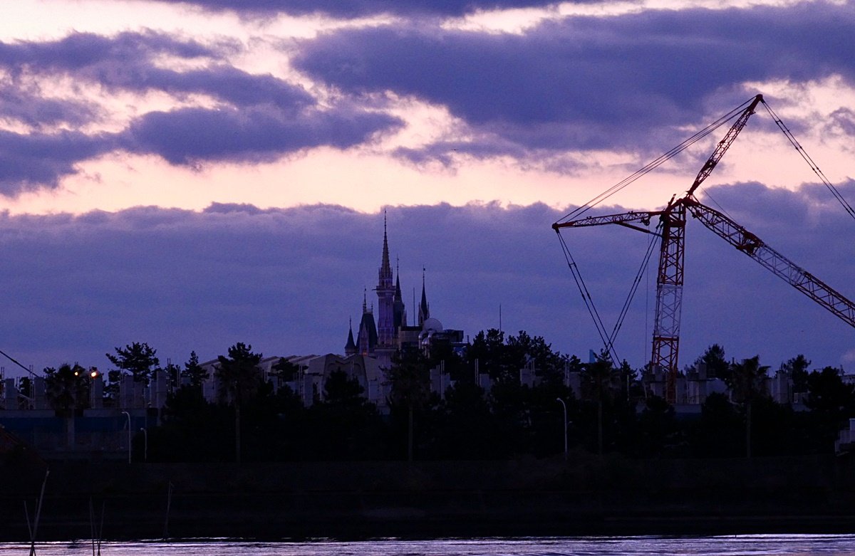 雲も低く,クレーンも邪魔をして,シンデレラ城から昇る初日を撮るのは難しかったので‥‥