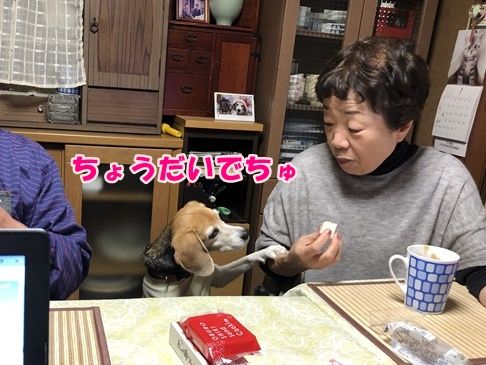 ひびこは愛嬌ふりまいてオヤツをゲット