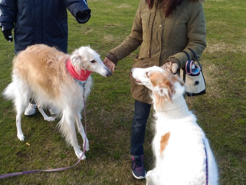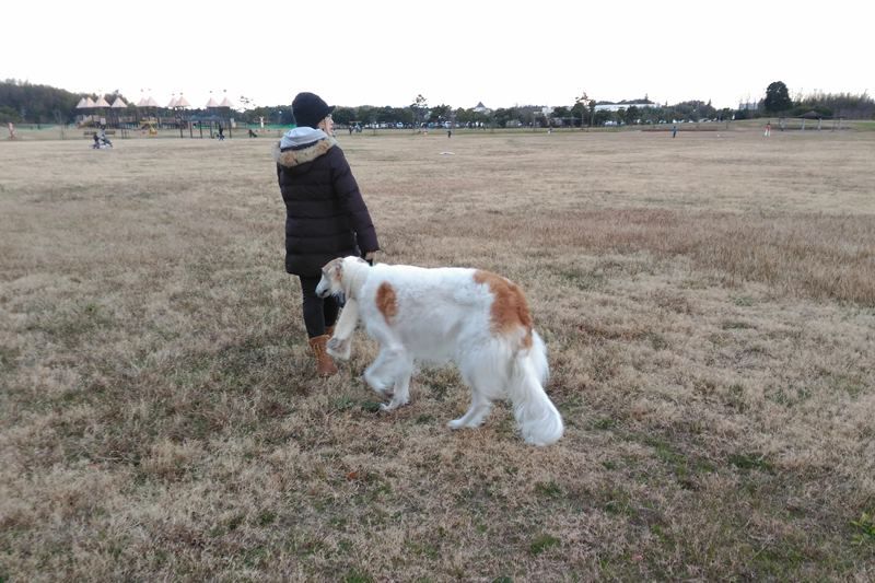 おうちゃんは、ボルゾイの相手をせずにユリ母の元へ