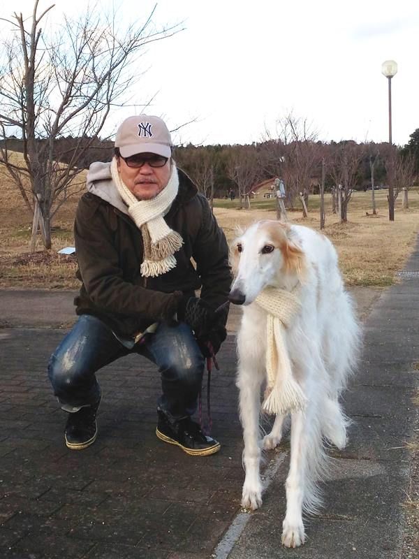 今日のユリさんの首には、カイ父手編みのマフラーしてます