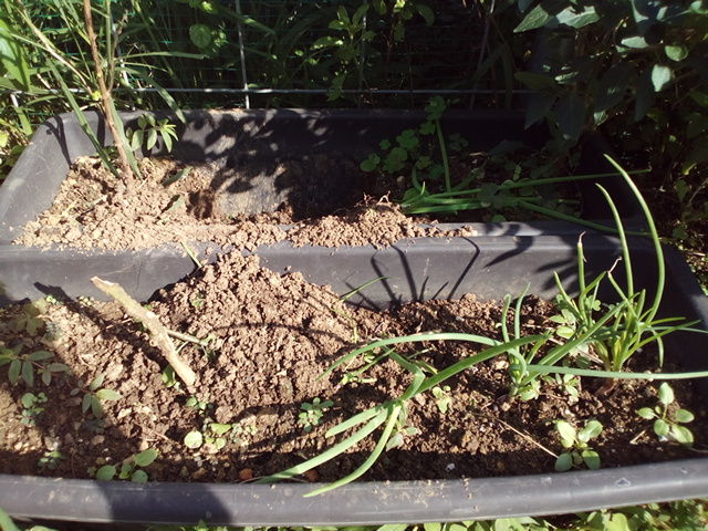 先日植えたシャロット(ホムデン)が一部掘り返されて、深い穴が開いている。
