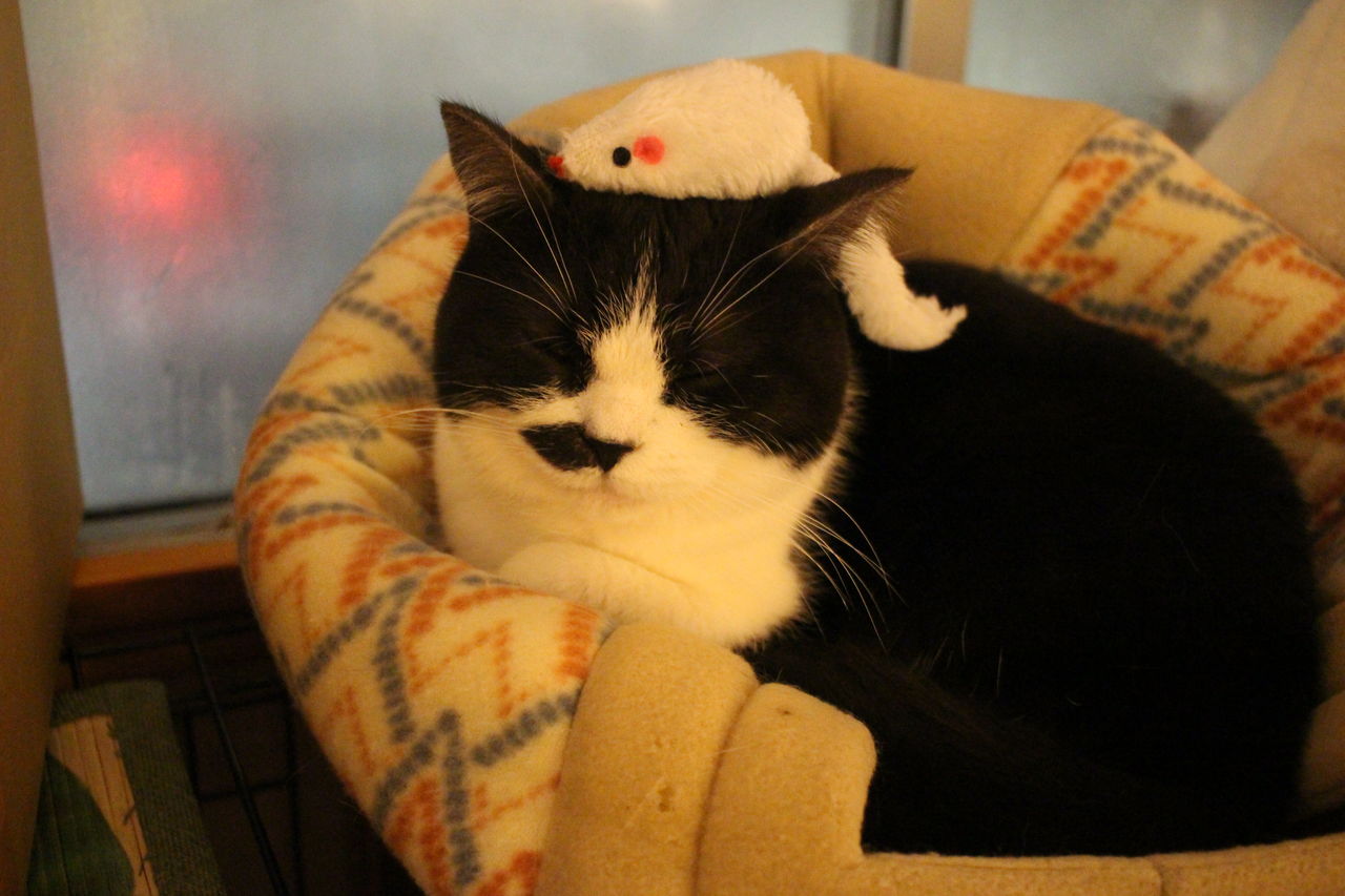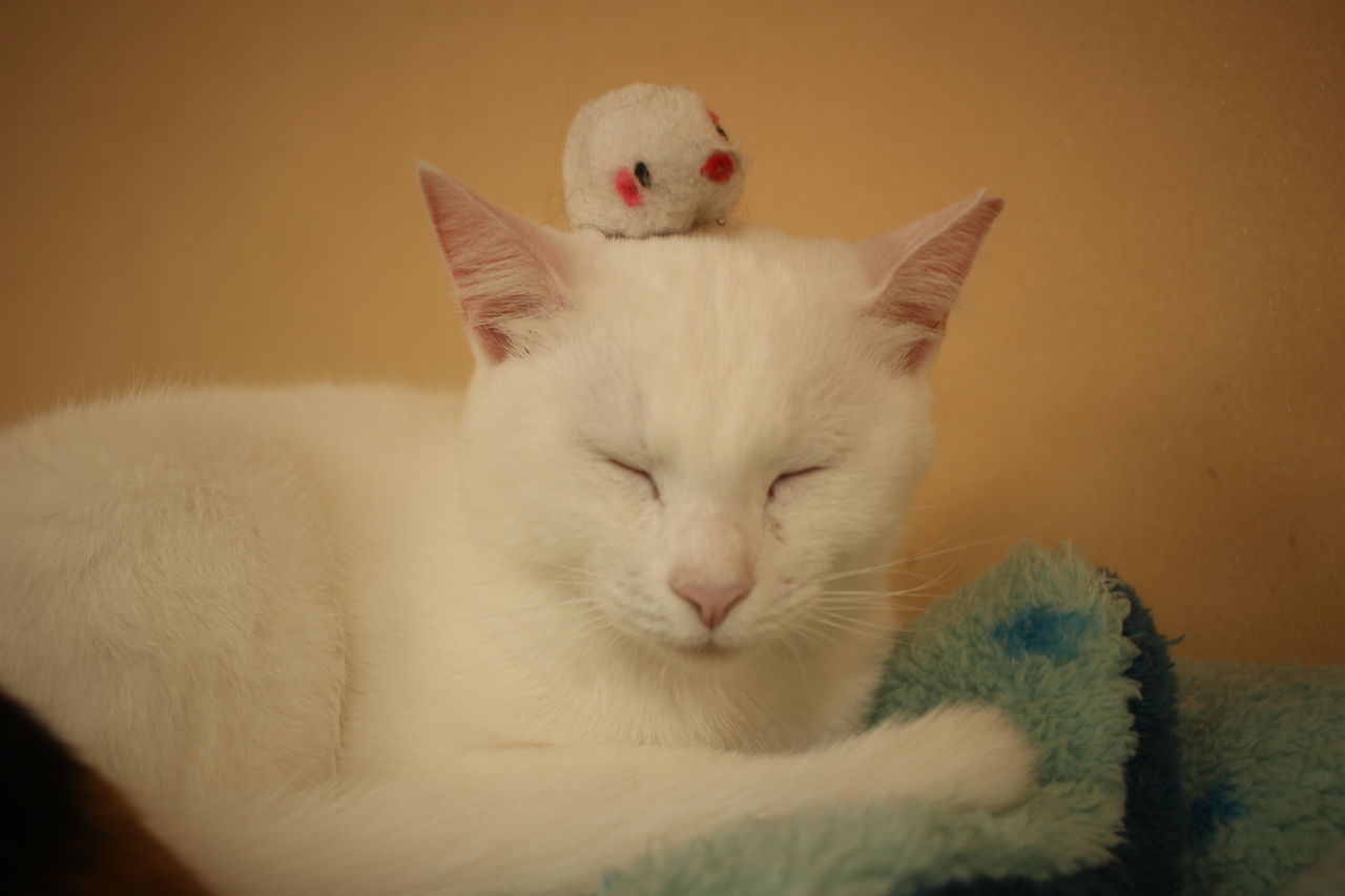 そして続いては、ハクさまです!これはおもちゃのネズミさんとの写真ですね