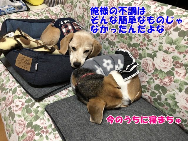 気持ちが悪い時は食べないって部分はビーグルオーナーは「そんなことない!!」って言っちゃうよね(笑)あたしも当然そう言ったけど先生は「そんなことないですよ、普通は食べません」「いや・・ビーグルはどんな時でも食べるし~~」「いえ食べません」そんなところで押し問答してても仕方ないからやめました。