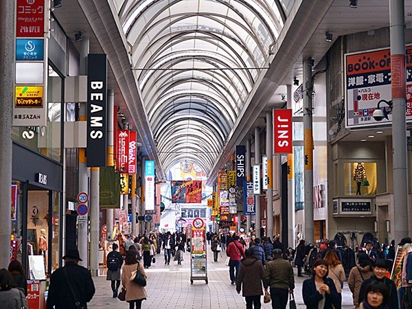 お好み焼きを食べた後,広島で最もにぎやかな本通り商店街という繁華街を散策。