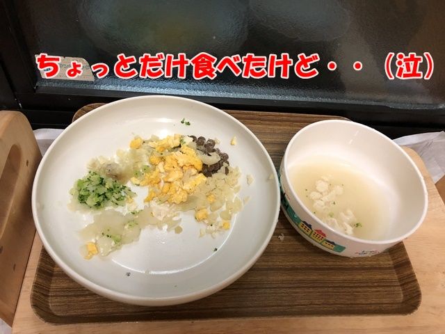 こんなに元気に歩いてるのに朝ごはんはフードどころか潰したサツマイモもすりおろしたりんごも食べませんでした。