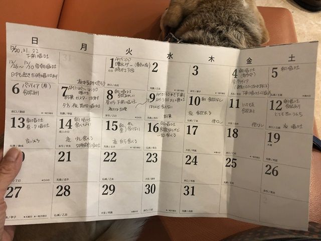 先生にこれを見せて「一月分ですが不調の開始は12月20日からです。こんなに吐くのが続くのはおかしいと思います。ほぼ毎日です。」