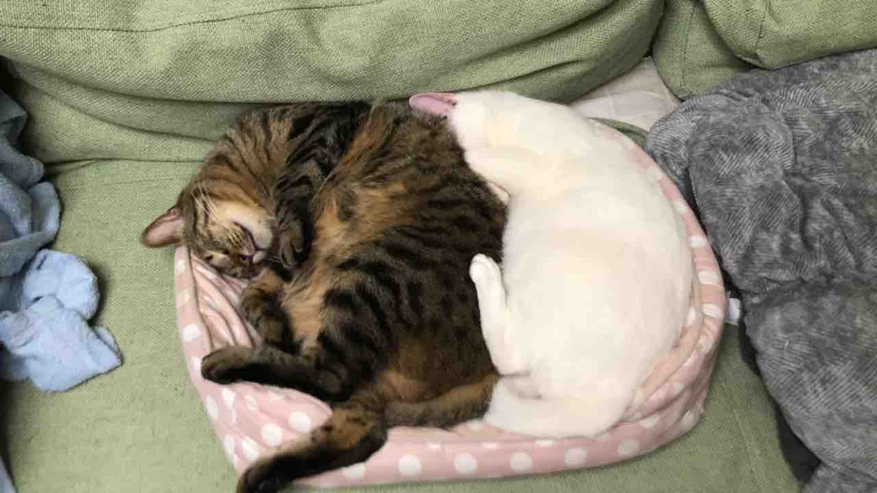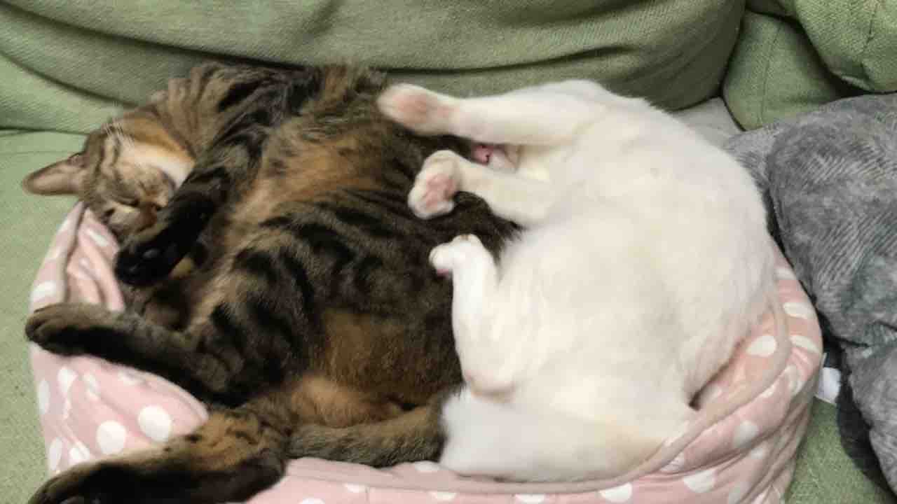 へたくそグルーミングされてもいっしょにくっついてるのはこれがもう当たり前の安らぎだからなんでしょうね。