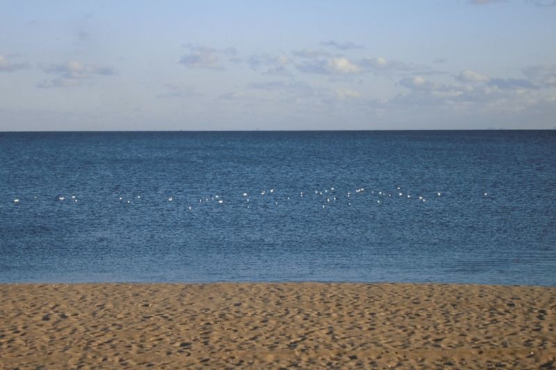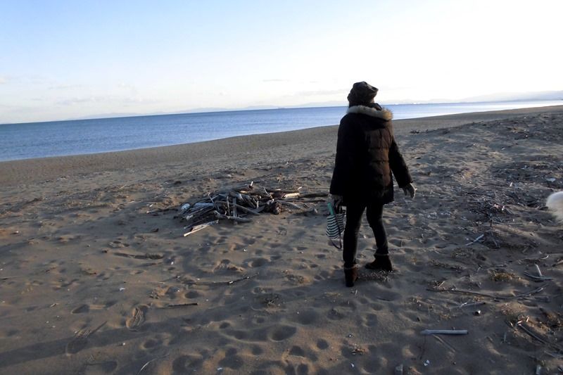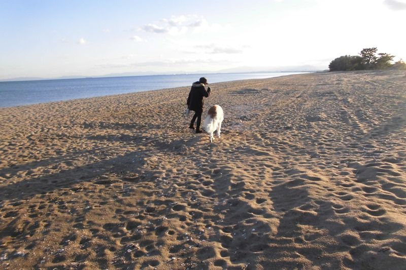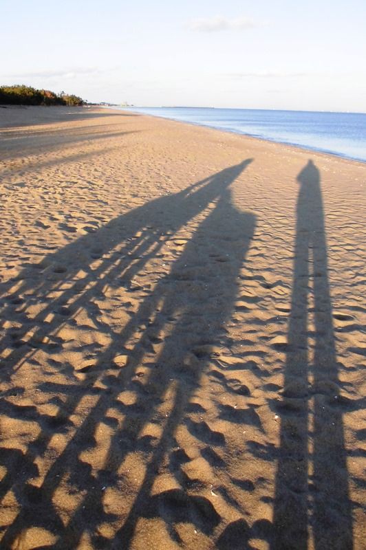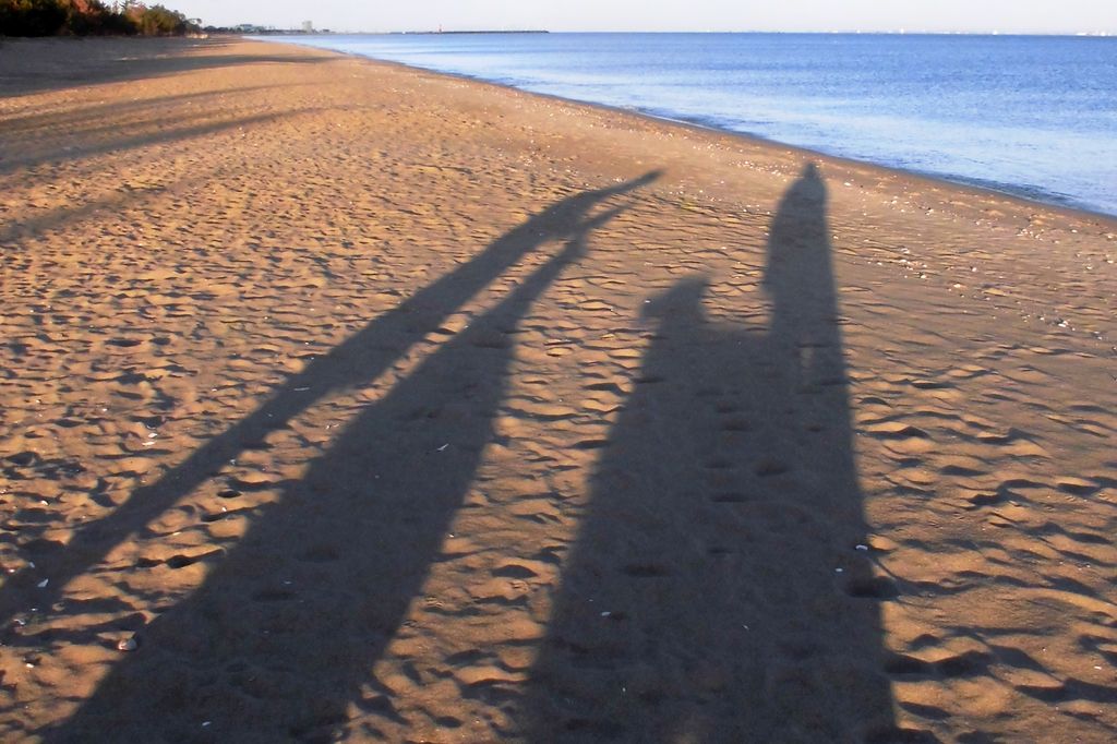 傾きかけた太陽の反対には、長く伸びた家族の姿