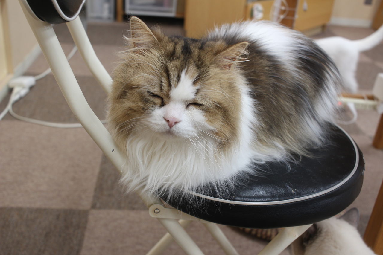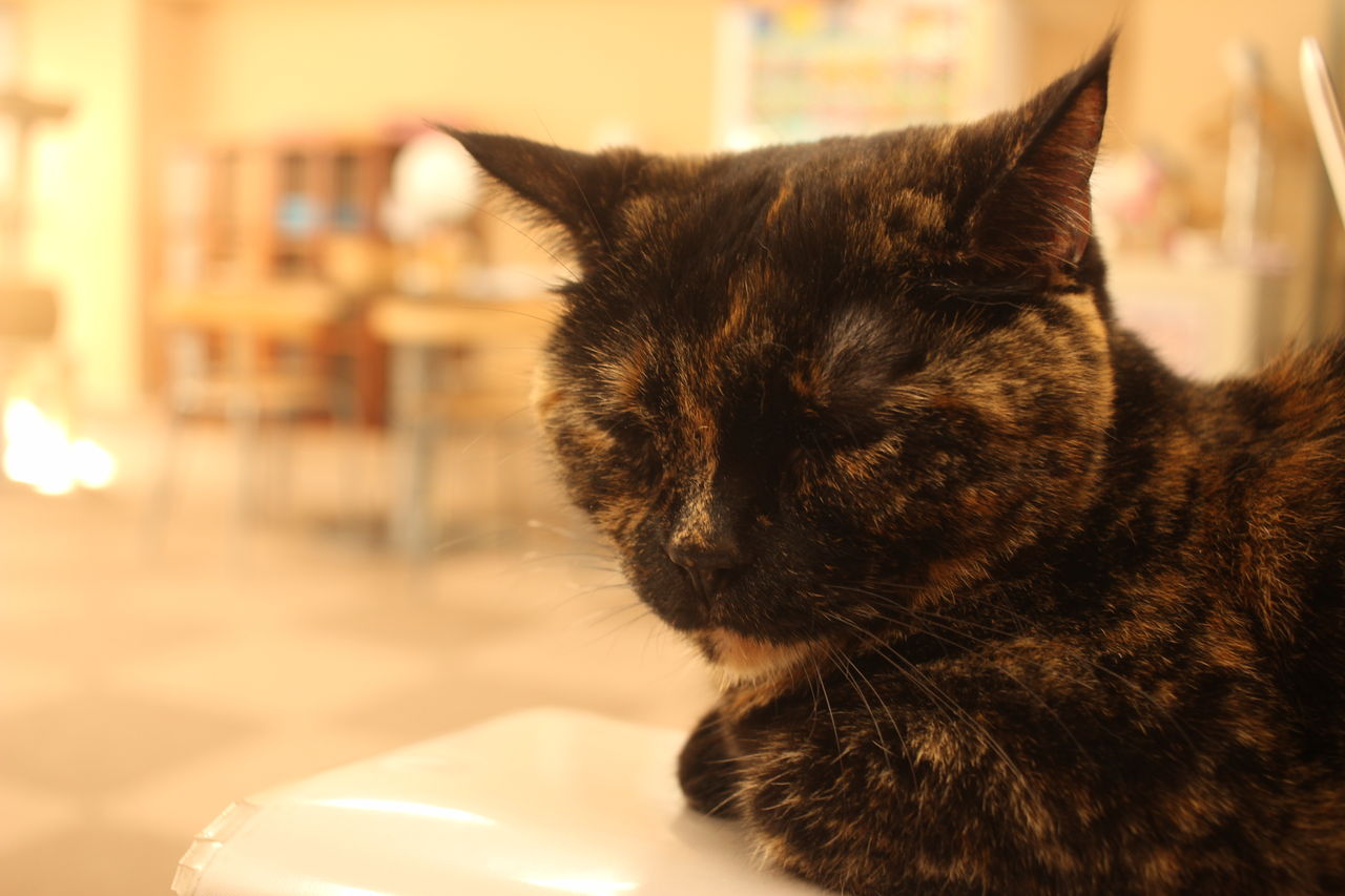 彼もまた、人の近くで休むことを好みます。彼のペースで店内をねり歩いているときや、ご飯を食べるときなどは、人から撫でられることをあまり好みません。とてもハッキリしていて分かりやすい。と思うでしょう。