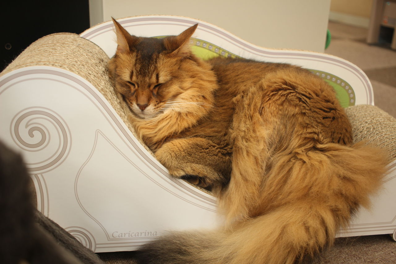 彼女は特定の場所で落ち着くのを好みます。これはどの猫でも当てはまることですが、体を落ち着ける時、人間の動線の近くで休むかどうかは、その猫が、人に撫でられたり、人のぬくもりが好きかどうか、ある程度教えてくれます。
