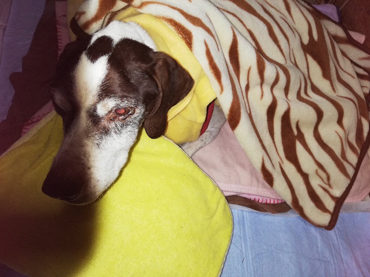 痙攣発作から寝たきりとなってしまったはるなちゃん、次の日からは自力で犬用ポカリを飲めるようになり、猫のパウチから少しずつ食欲も上がって来ました❗