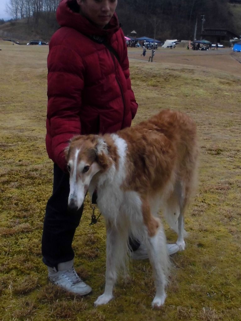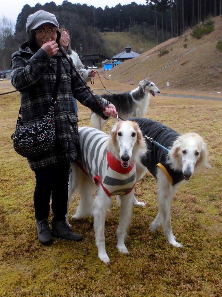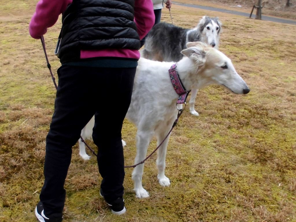 チビ(グレートデン)を連れたサコさんを見つけて陸ぼんが近づいた