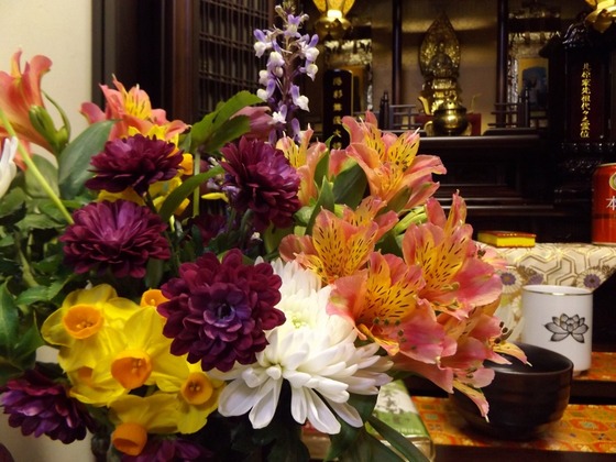 気温の上昇に相まって我家のお花も次第に咲き出し、仏壇のお花も助かりますが、これから一気に咲くので勿体無いとも思いますね。
