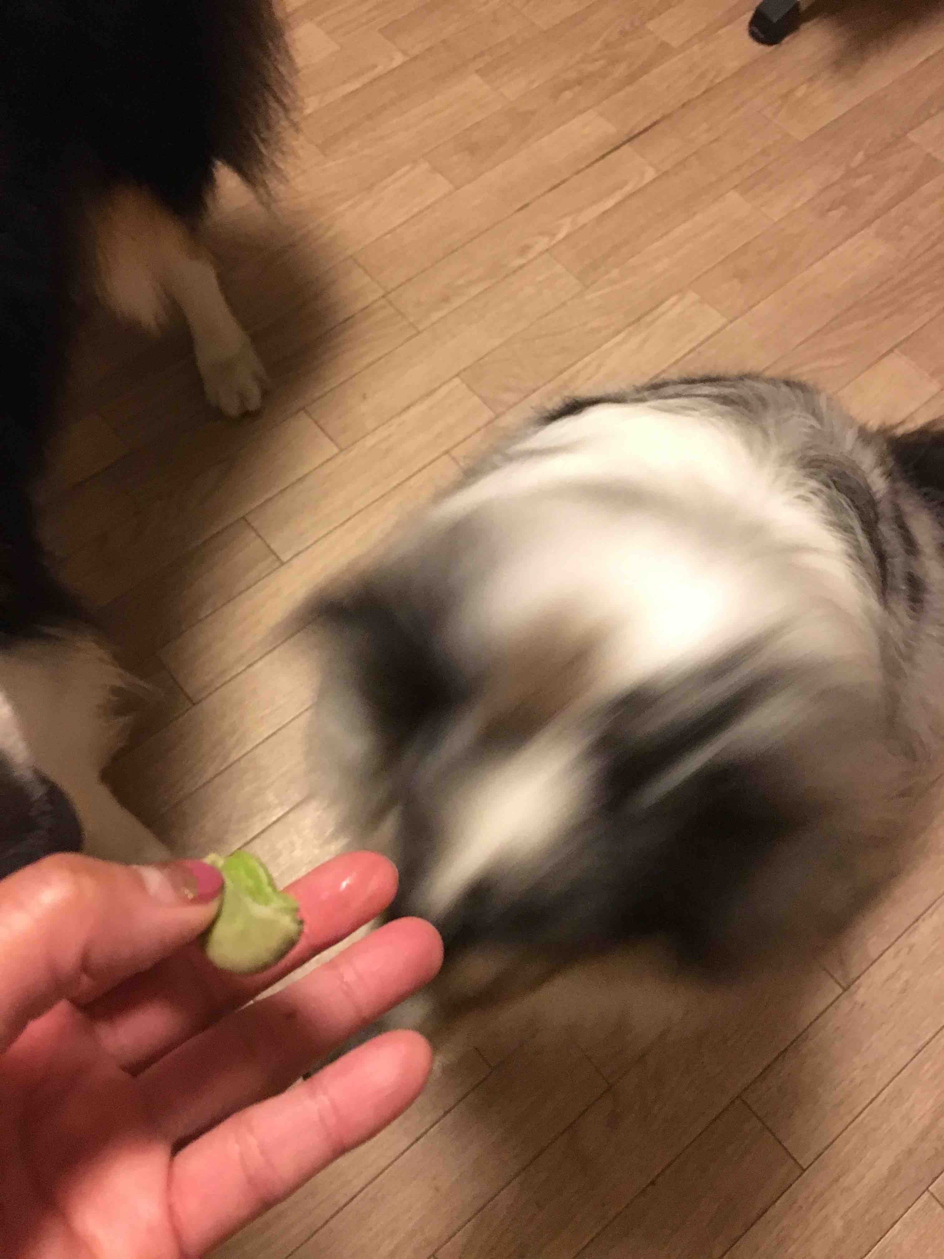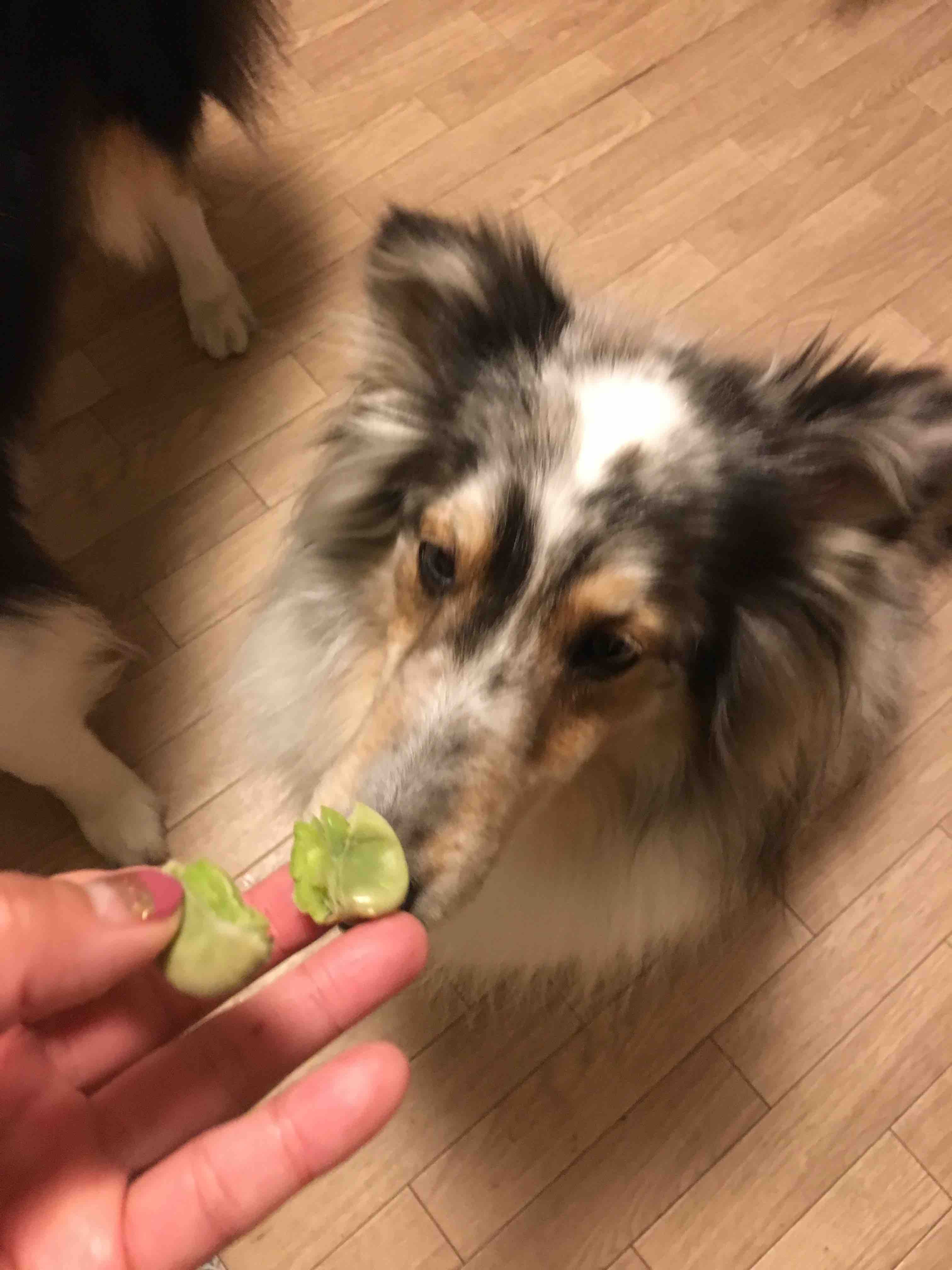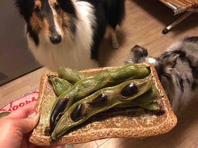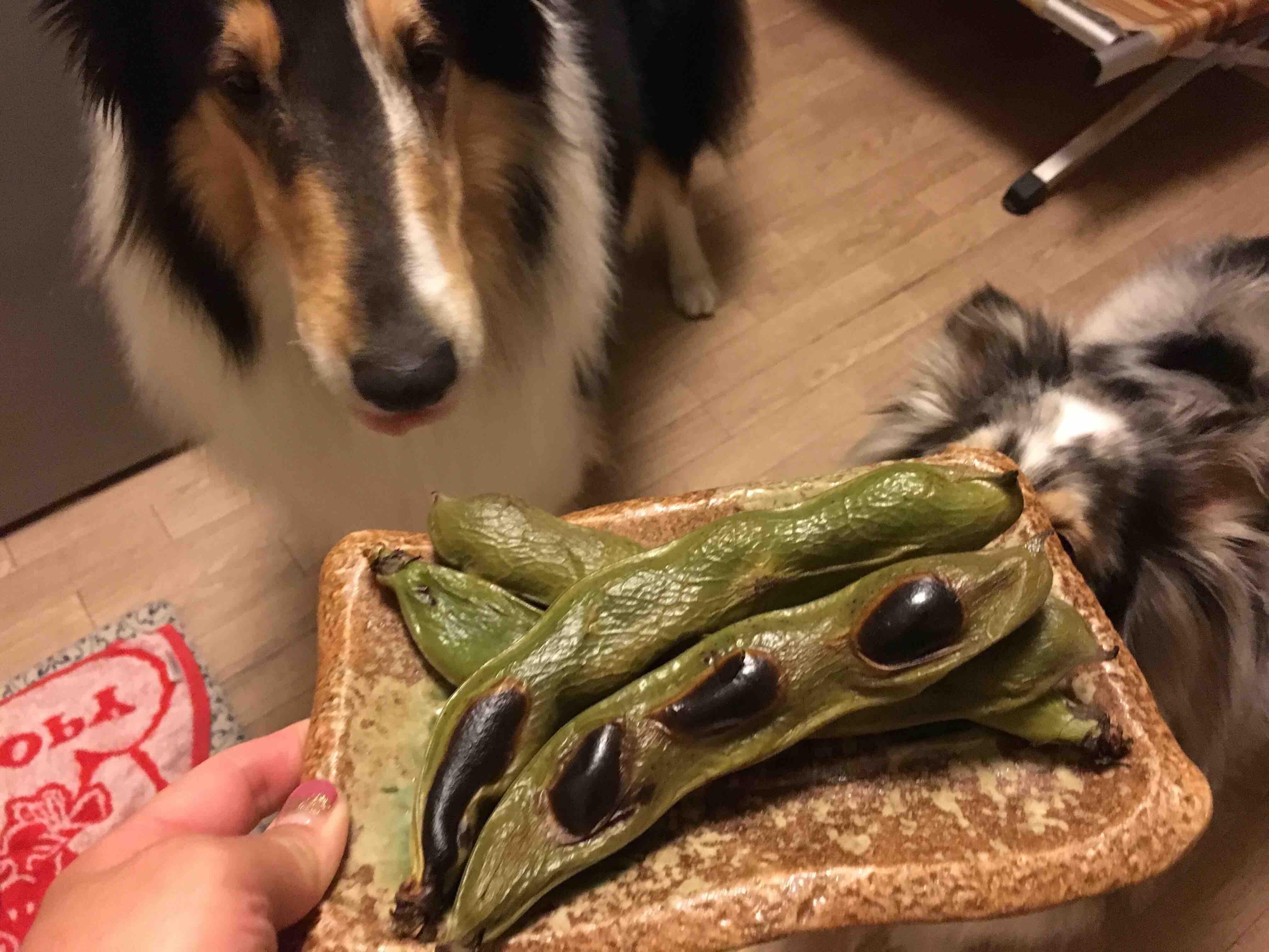 そら豆は大好物! こんな季節になりました~(^^♪ ゆらぼんの顔が見えてないわ。 撮りなおそう! やっぱり映ってなくて ミロちゃんは舌なめずりしてより近づきました。 味見しよーぜー!ひゃっほー! 瞬殺。 ぶれぶれ笑