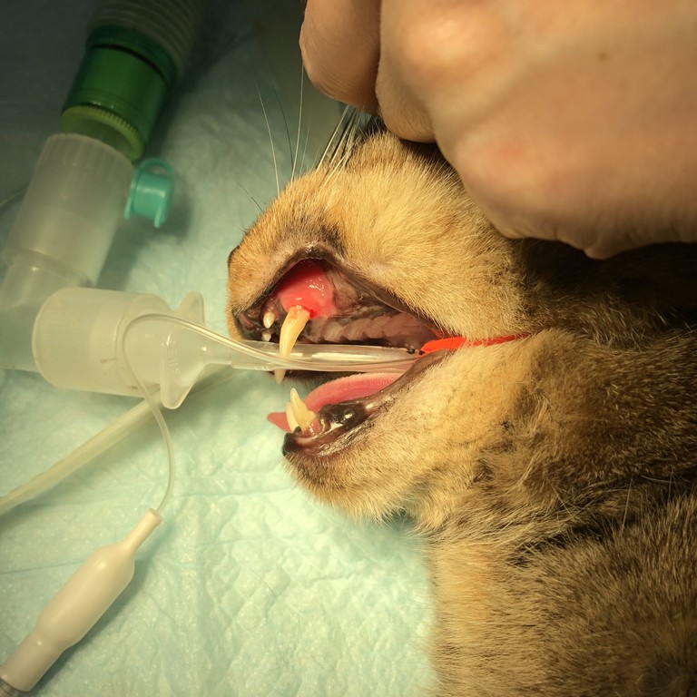 午前中の診療を終えて、そのまま多摩支所から数年前に連れてきた多頭崩壊のお母さん猫の抜歯に入った。