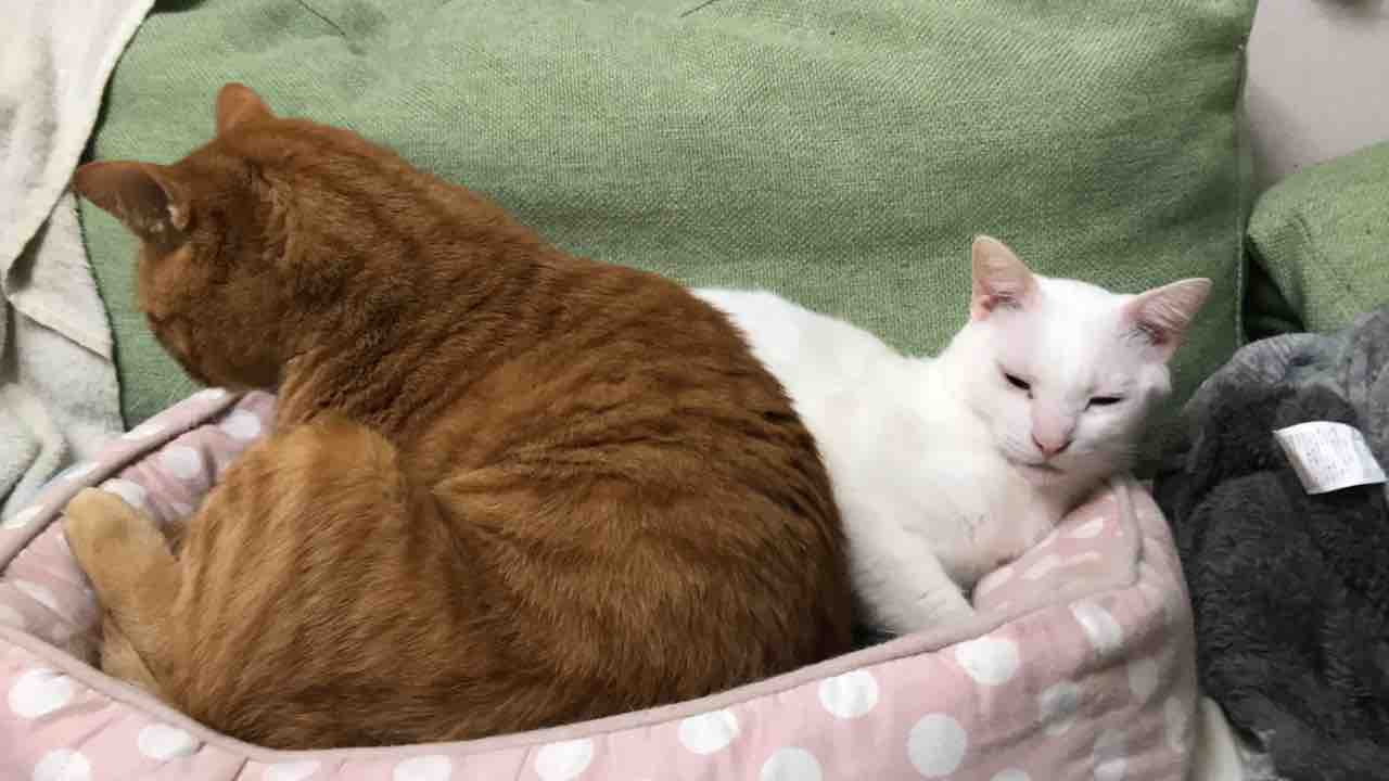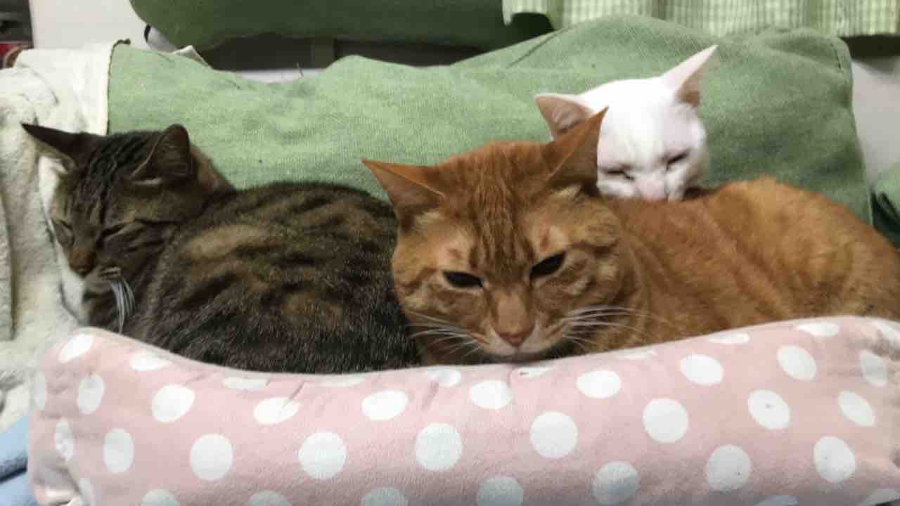 存在感抜群の参瑚。この猫ベッドはそもそも一匹用のはずでは。