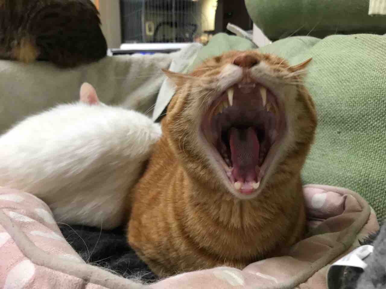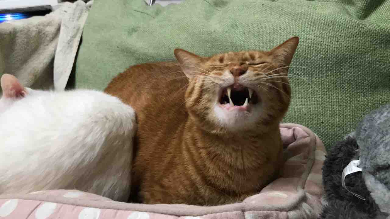 猫のあくびの瞬間、それが猫の全力の顔面力が爆発する瞬間です。