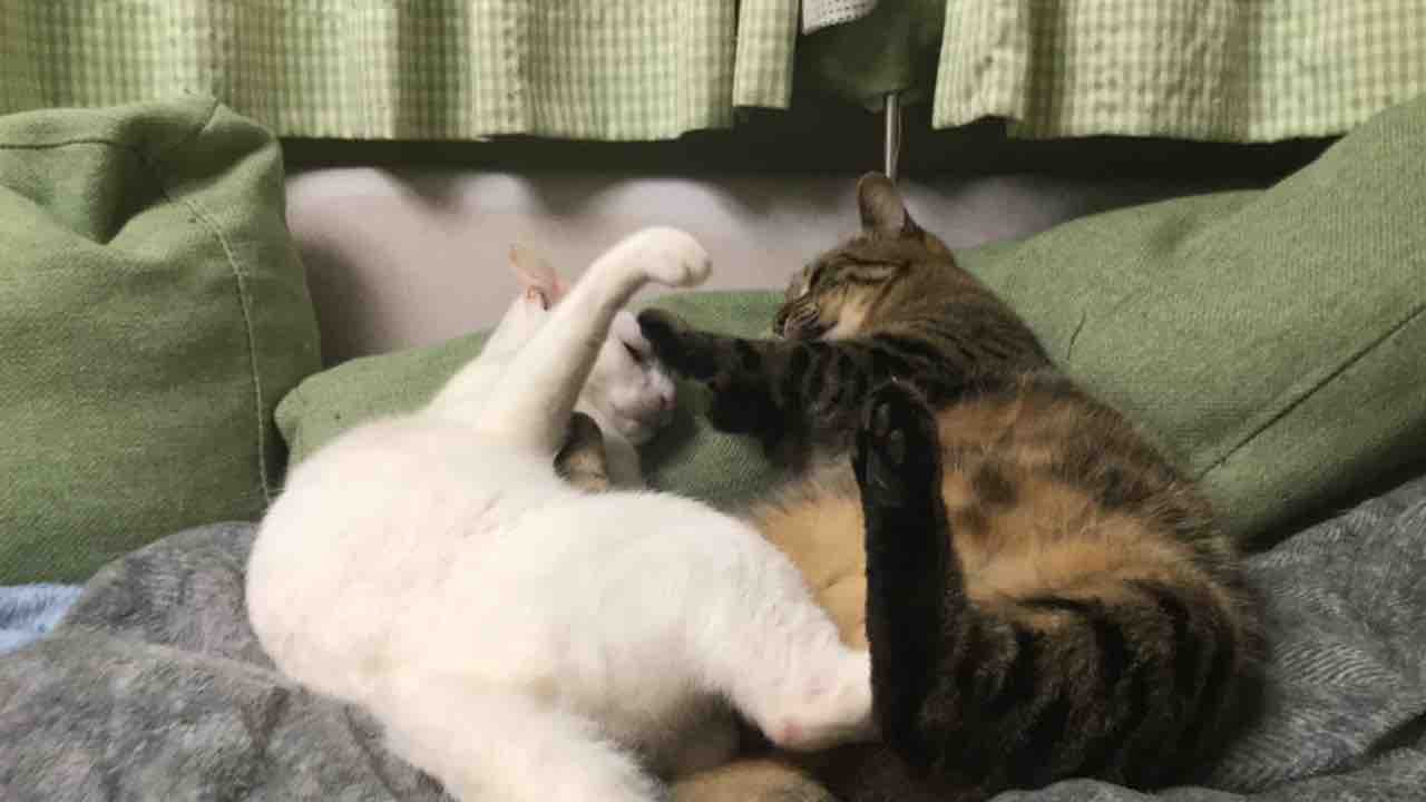 日曜日に嘔吐してテンション低かったので大丈夫か?とその晩見守ってたんですが、時雉にはやはり絡みに行ってました。