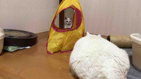 と言うのも、よくわからないんですが暁璘には、他の猫に突進する習性があるようでして。