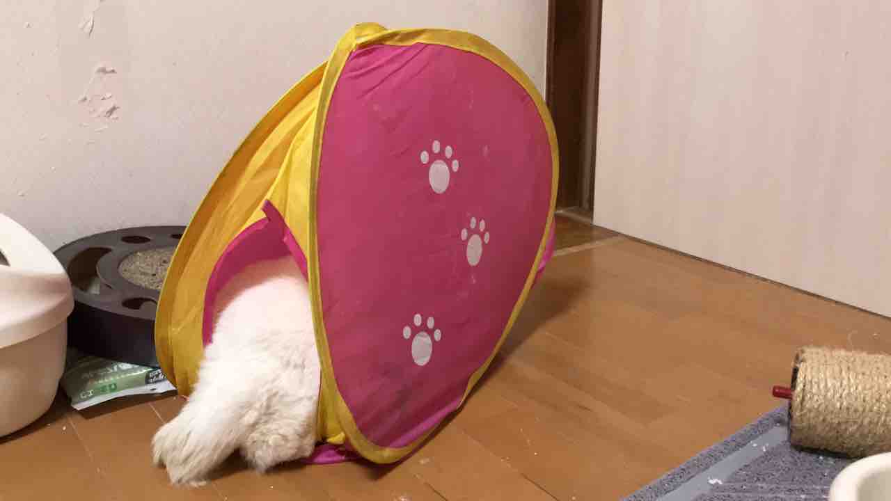 暁璘は別に足が悪いとかではないんですが、キャットタワーの二階に跳び乗るという事をなぜかしないので、絶好の逃げ場所に。