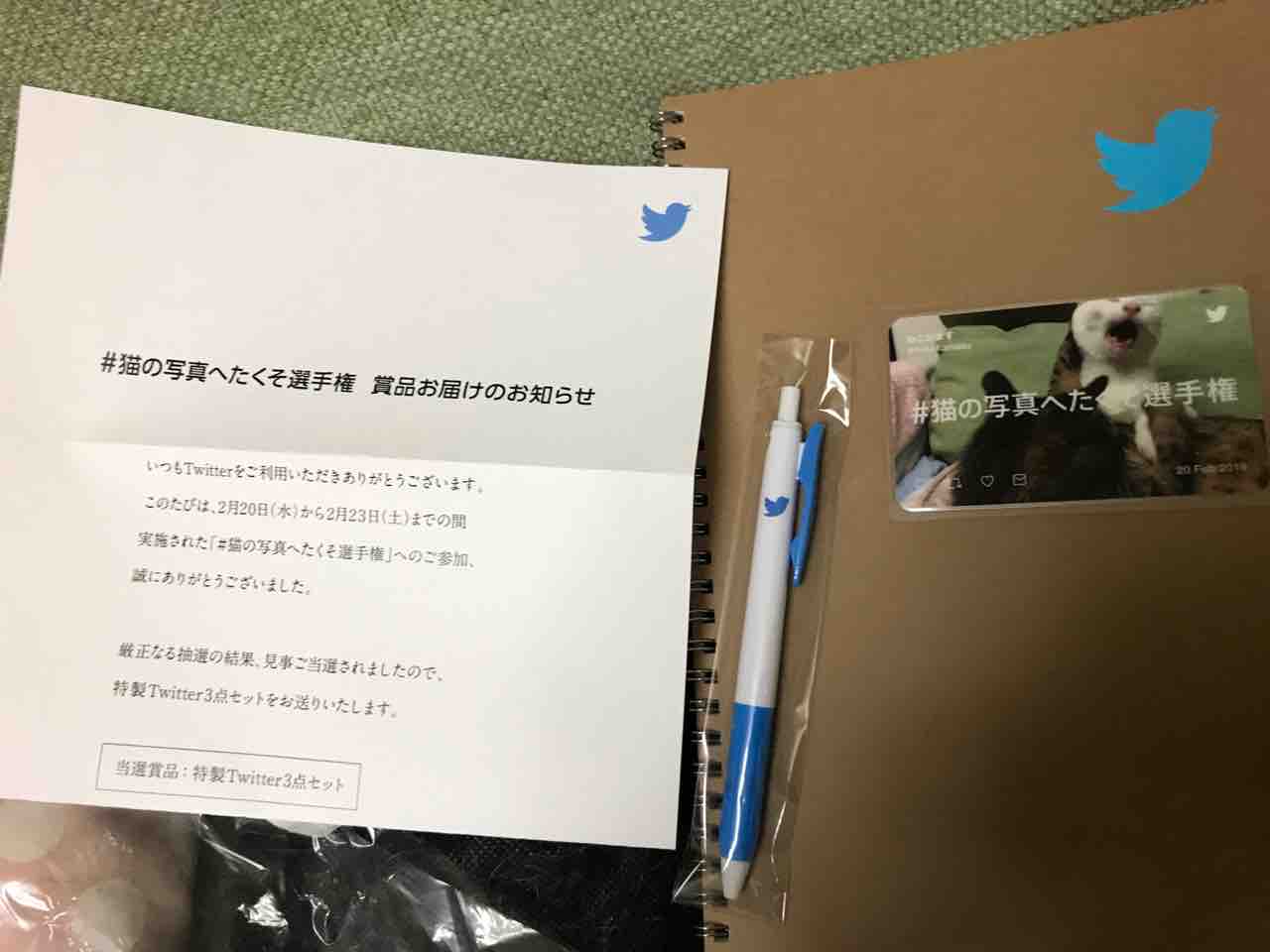 Twitterグッズ(ノート、ボールペン)と、へたくそ写真カード。