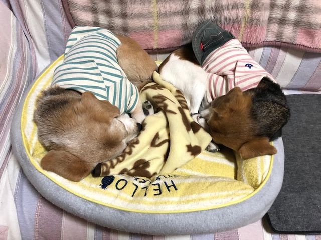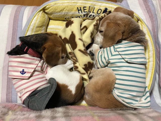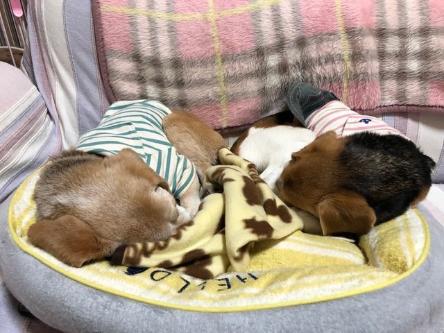一つのベッドに2頭。