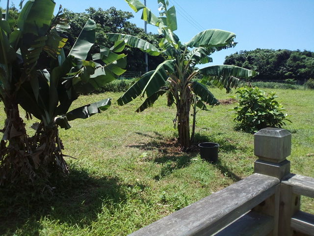 バナナの木が大きく育ったので、ちょうどいい目隠しになっている。
