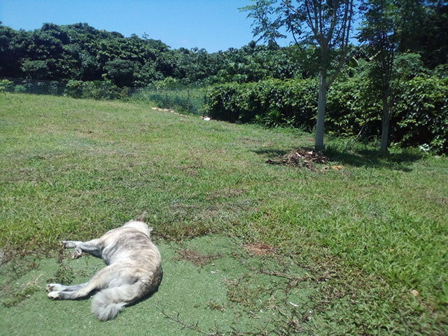 日光浴をするはっちゃん(秋田MIX♂6歳)。