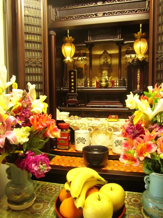妻はうっかりしてて、朝、仕事へ行く前にバタバタとお供え用のお花を摘んでました。