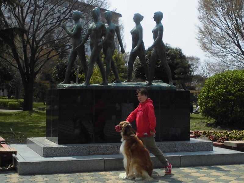 公園正面入り口で記念写真を撮ろうとしたら、ショコタル赤がシャッター押しに来てくれた