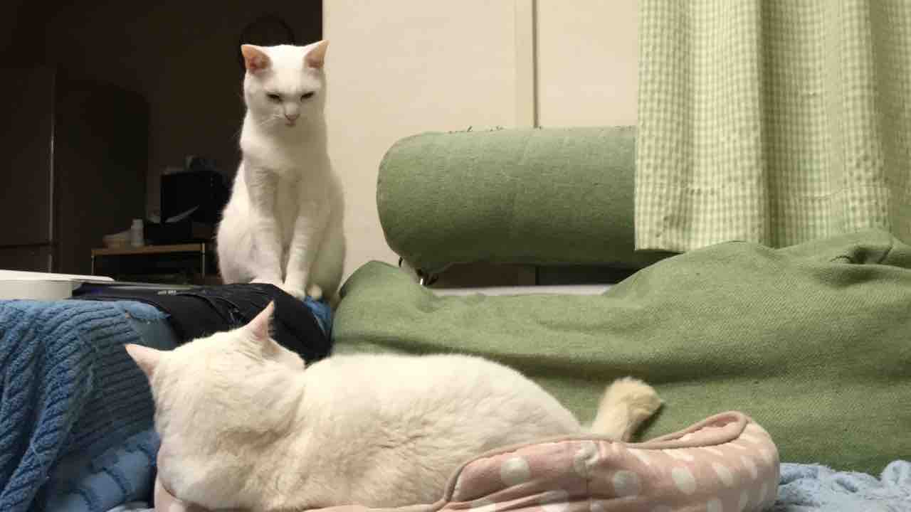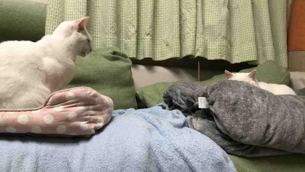 参瑚は隠れてました。やはり、自分がいる時でないと猫部屋からは出せません。
