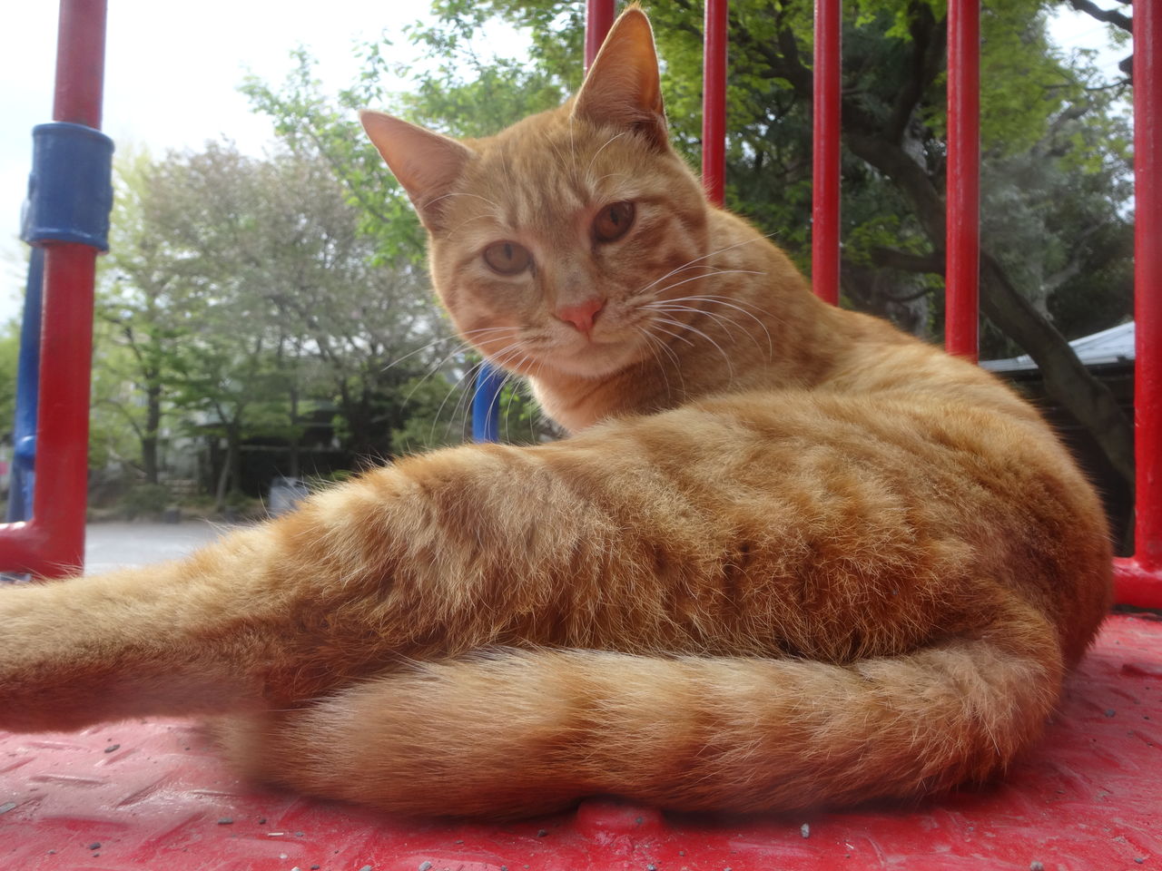 茶トラ3号が懐いてからは、遭遇してすぐはテンションが高いので、少し落ち着いてから距離を若干もって撮ってました。