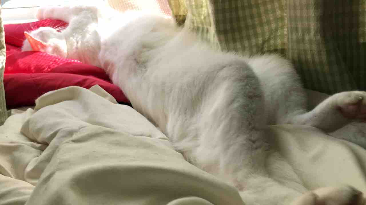 麿白先生が伸びてそってます。うん、完全夏モードです。