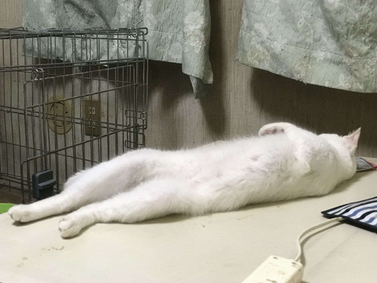 参瑚が添い寝してる時、麿白先生はどうしてるかというと涼しいところで伸びてます。