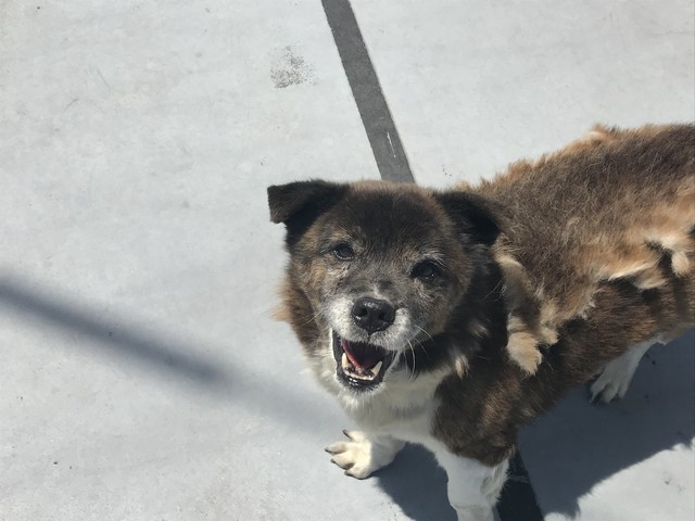 小屋の奥でじっとしている犬太朗君です!!