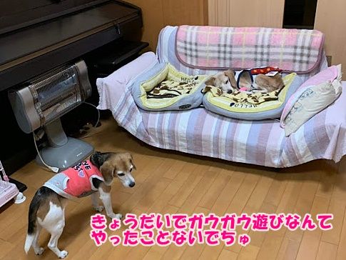 この日は若いビーグルさんが多いと言うことでソファーを移動してリビングは遊び場にしておきました。