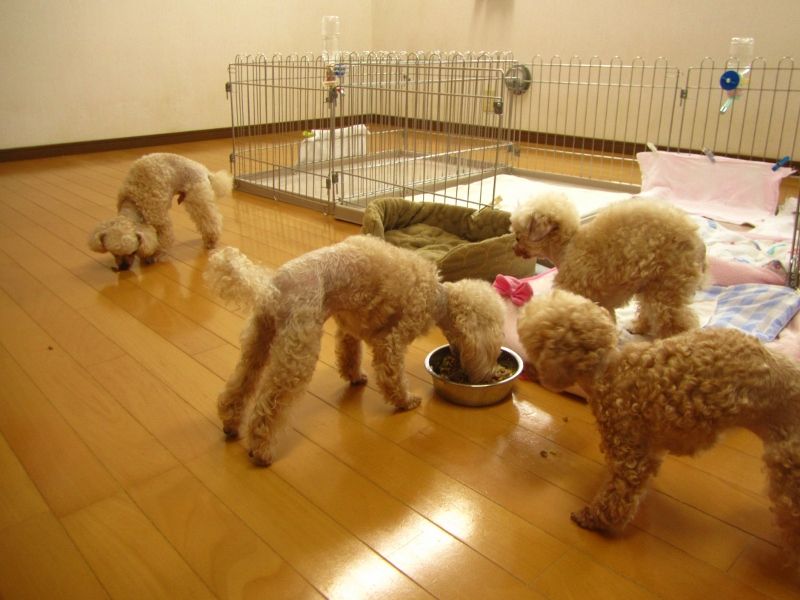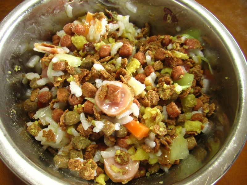 初めは便が緩くならないように、ドッグフードにトッピングです。