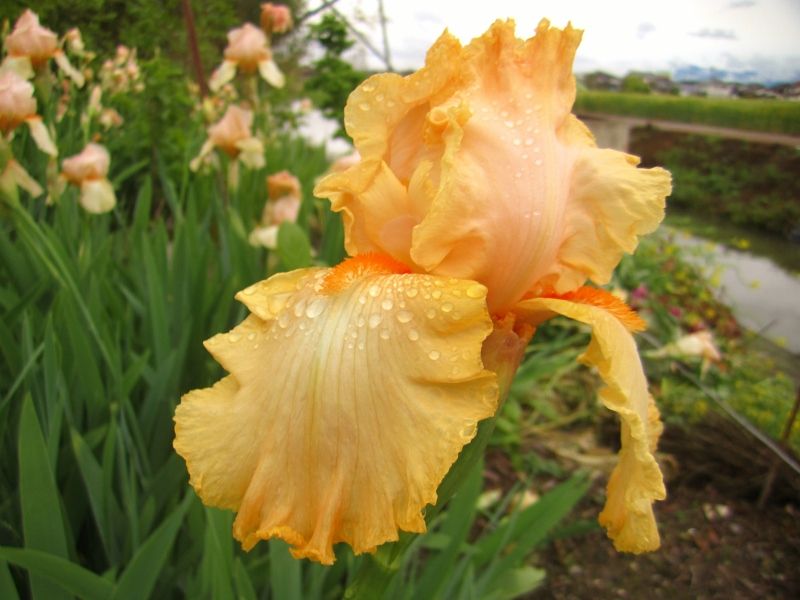 敷地を一周していたら、あのオレンジ色のジャーマンアイリスが開いてました。