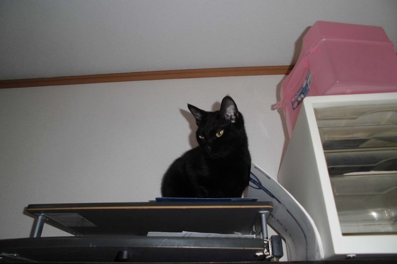 しかし、この猫もかなりシャイな性格なので、部屋を覗くとほとんど本棚の上