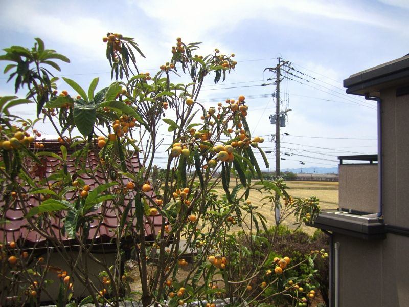 今日も夏日ですが、熟れだしたビワを狙ってカラスがやって来てます。