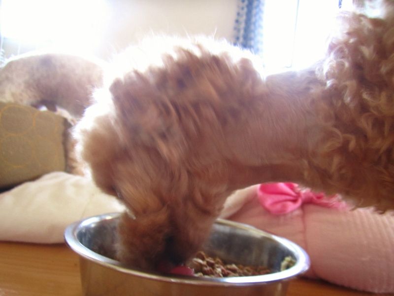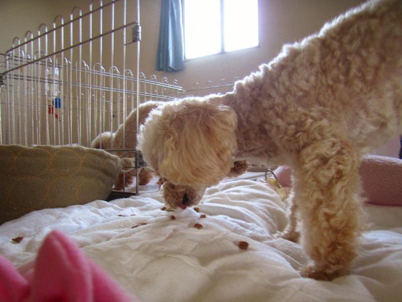 でも、男の子たちは、何故か、フードを沢山口に咥えて、ベッドの隅へ行って吐き出してから、一粒ずつ食べるんですよ。