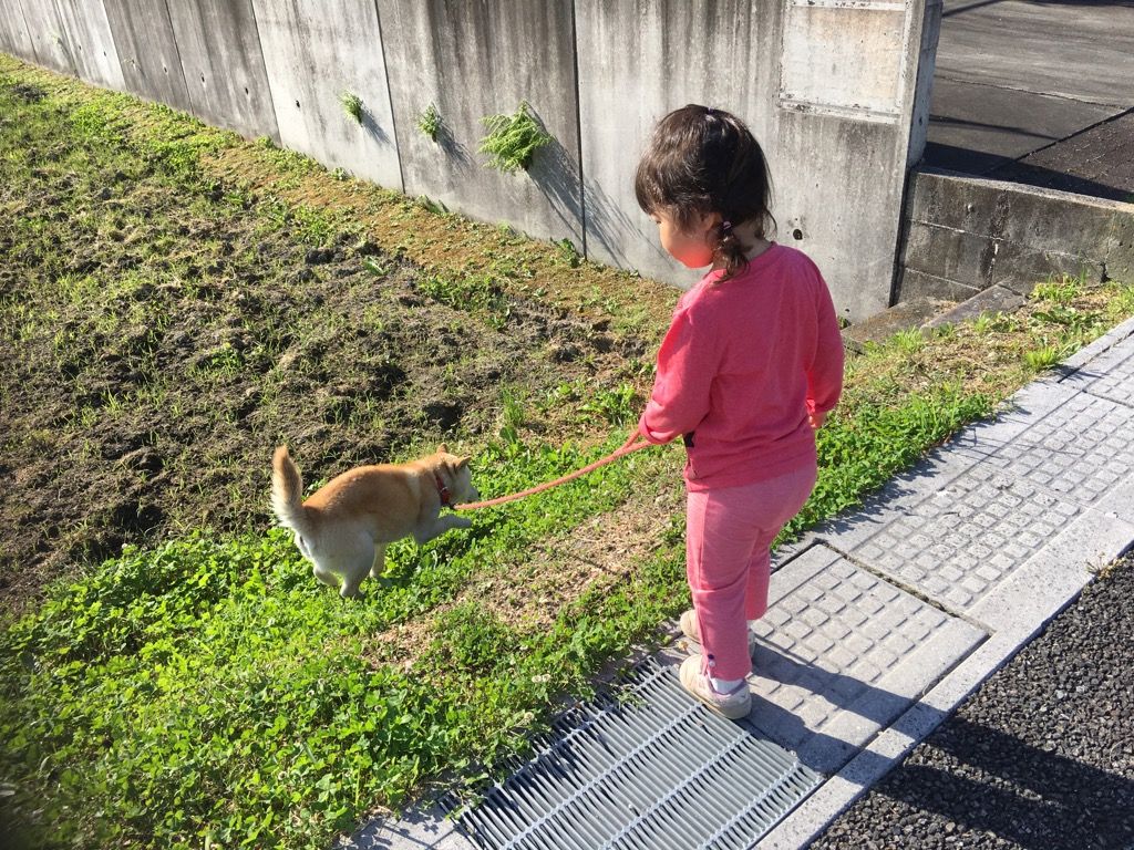 何度でも、散歩に連れ出されるレンゲちゃん。